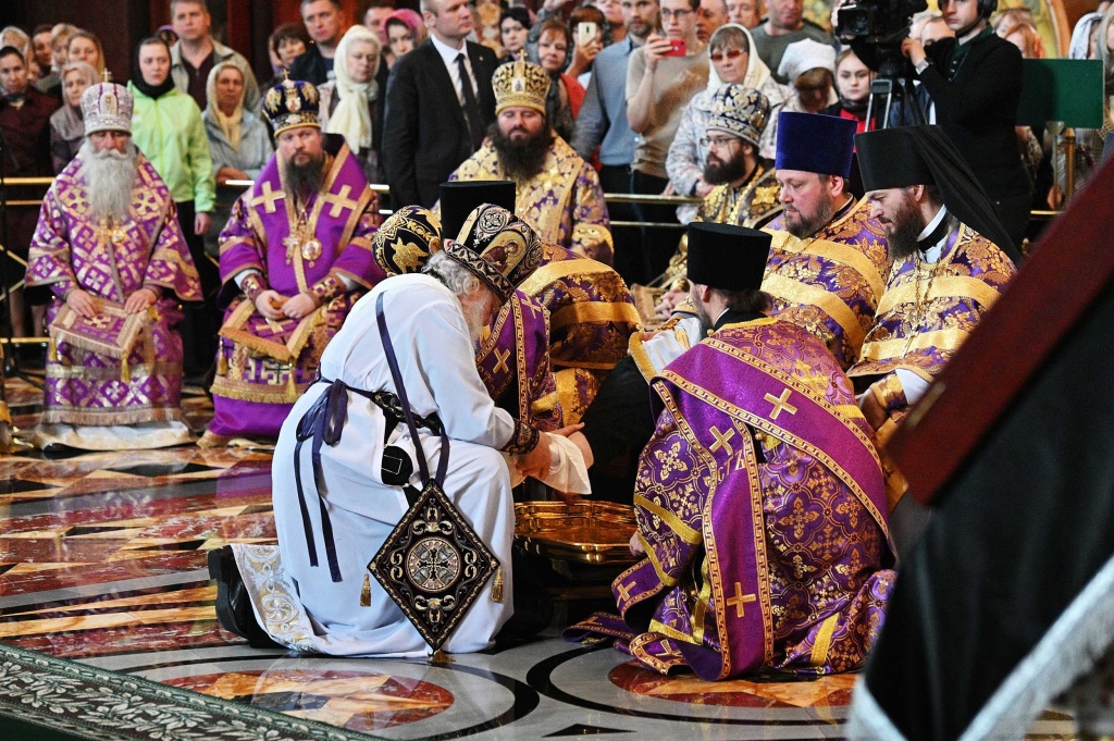 В 2009 году, впервые в новейшей истории, Предстоятель Русской Православной Церкви Святейший Патриарх Московский и всея Руси Кирилл совершил этот древний чин в Богоявленском кафедральном соборе Москвы после окончания литургии Великого Четверга.