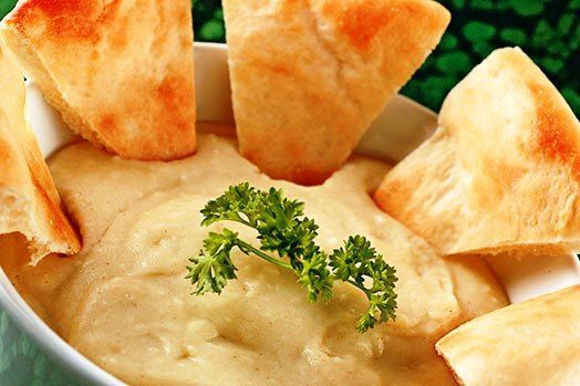 Выложить хумус на тарелку. Подавать с хлебом или лепёшкой.