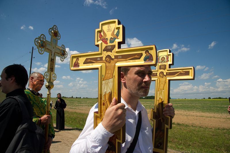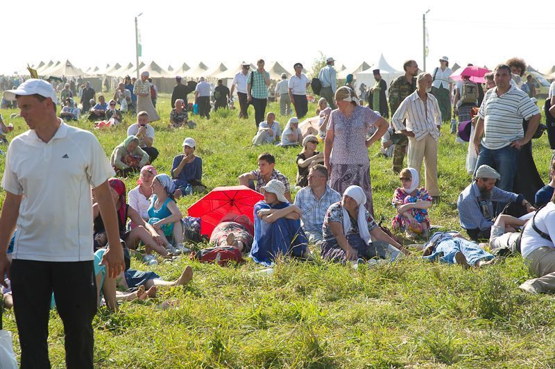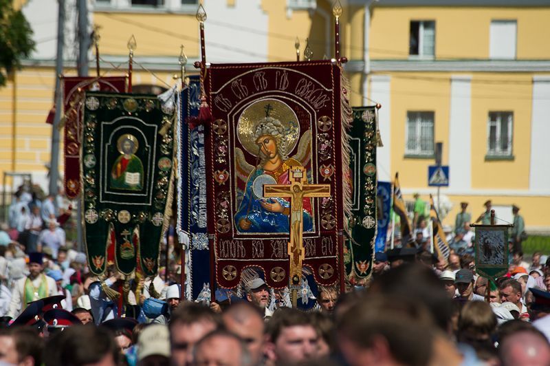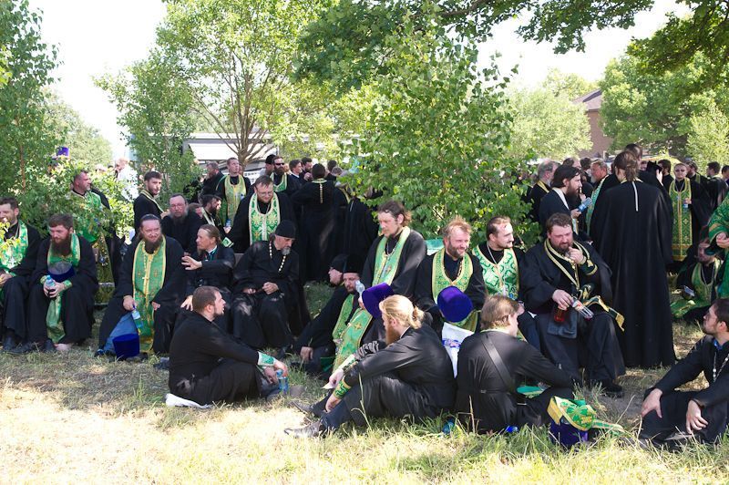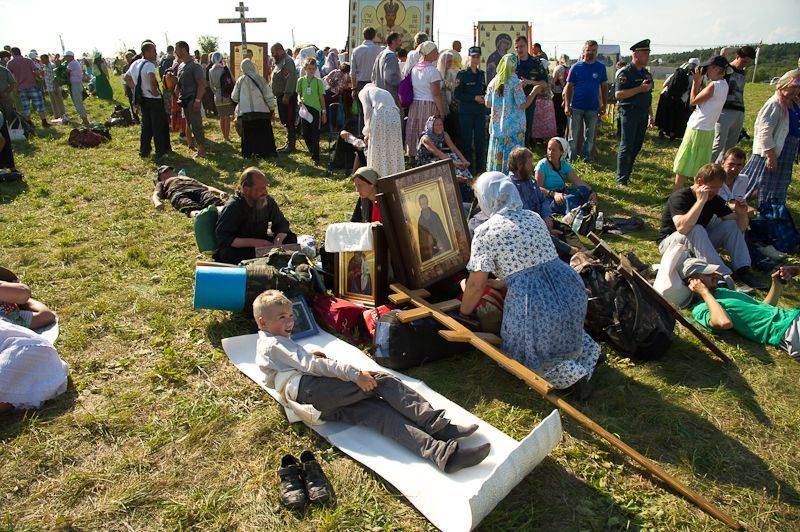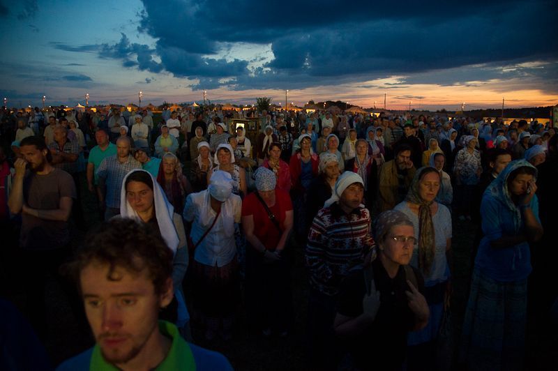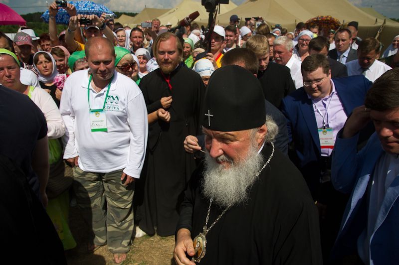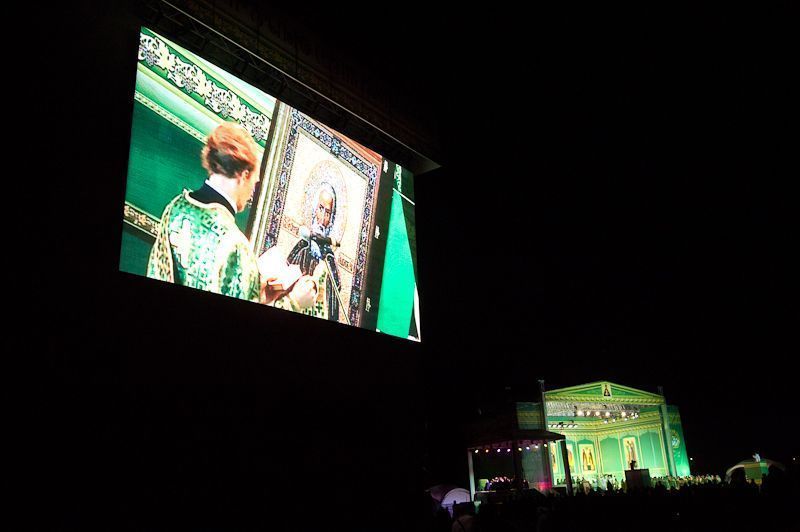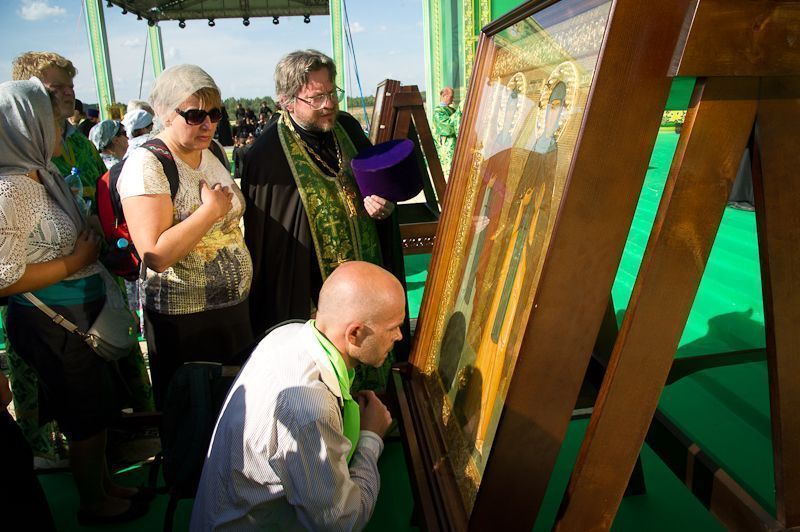 Лавра не могла вместить всех паломников во время Патриаршей литургии 18 июля. Тысячи людей наблюдали за трансляцией службы на Красногорской площади перед обителью и в лагере паломников на Благовещенском поле.