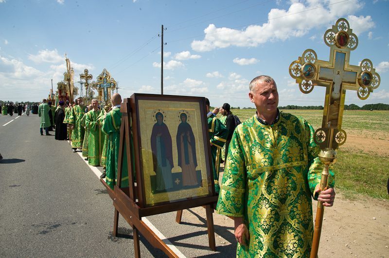Главные святыни крестного хода – икона с мощами преподобного Сергия Радонежского и икона с мощами преподобных Кирилла и Марии, родителей преподобного Сергия.