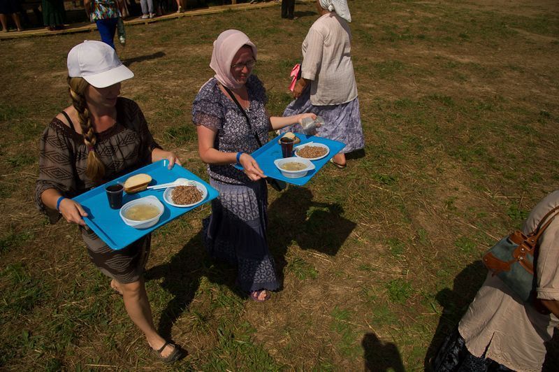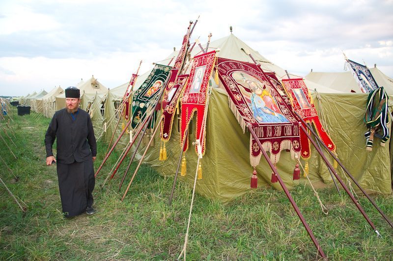 Вблизи палаточного городка, развернутого на Благовещенском поле, организовано место для совершения богослужений. Кроме служб дневного круга на поле также служили молебны с акафистом преподобному Сергию Радонежскому.