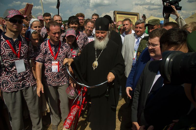 Одним из первых зарегистрировавшихся в паломническом городке стал Патриарх Кирилл, он получил карту паломника и пропуск.