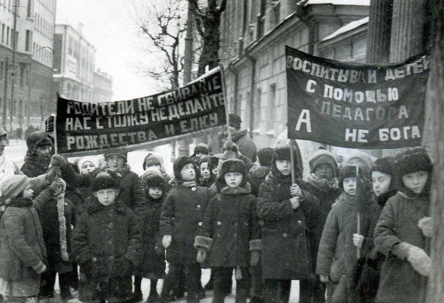 Для начала организовали «комсвятки». 25 декабря было нерабочим днем, и молодые люди решили «отметить» Рождество чтением докладов, юмористических игр или сатир на церковные темы. На второй день устраивали уличные шествия. На третий – костюмированный бал. В роли антигероев выступали Колчак, Деникин, кулак (зажиточный крестьянин), нэпман, языческие боги, рождественский поросенок и гусь. Во время шествий иногда сжигали иконы. Такие «ёлки» устраивали в детских домах.