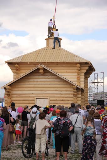 Кульминацией этого дня был вовсе не концерт – главным событием фестиваля стало возведение обыденного (то есть построенного за один день) храма и молебен в новопоставленной деревянной церкви.