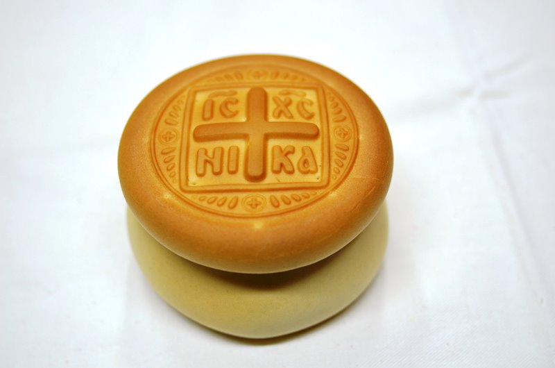 На просфорах и священных облачениях обычно изображают равноконечный четырехконечный крест с буквами «ИС ХС НИ КА» что переводится с греческого как «Иисус Христос, побеждай!».