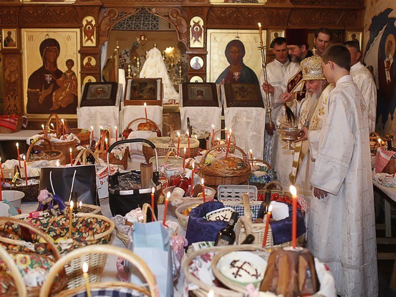 И еще, где-то по весне, чаще всего не в то воскресенье, что по всей стране, Пасху празднуют православные. И тут мы наблюдаем совсем иную картину. Церкви переполнены людьми. Все празднично одеты и держат свечи в руках. Сразу видно – пришли все. Даже те, которые обычно не находят повода зайти в храм. Отовсюду раздаются возгласы: Христос Воскресе! Воистину Воскресе! И все это происходит посреди ночи. Много где выставлены особые пасхальные куличи, сырная пасха и раскрашенные пасхальные яйца. В корзинках с едой горят свечи.