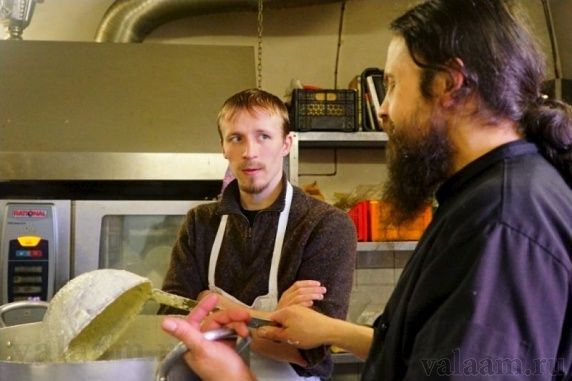 На кухне Валаамского монастыря − запарка. Сладкая запарка. Здесь варят праздничные пасхи. Настоящие, монастырские. Творог и яйца − с Валаамской фермы. Повара шутят, что лишь сахар пока не валаамский, а так все свое, монастырское. Трудами и молитвами дело идет.