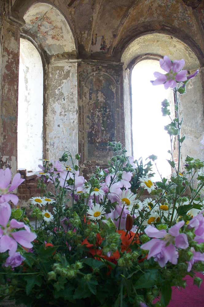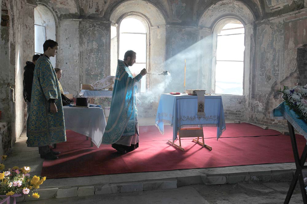 И вот радость – дано благословение совершить в двунадесятый праздник Божественную литургию. И ничего, что пока удалось собрать средства только три окна, а поставить нужно восемнадцать, и пока оконные проемы затянуты полиэтиленом, что богослужение совершается на походном престоле, что нет освещения и отопления – все равно, по признанию одной из участниц того богослужения, «в сердце ангелы поют».