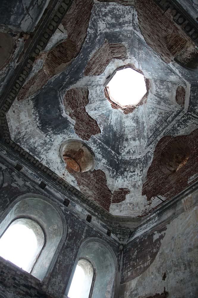 Храм был в запустении, но смог устоять. Стены по-прежнему крепкие, на них до сих пор сохранились росписи и лики святых.