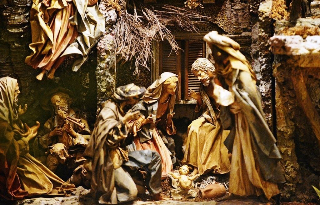 Никто не заметил, как и когда именно она появилась. Бабочка тихонько сидела на «яслях» и никого не боялась — видимо, и она хотела приобщиться к великому празднику. Немного посидев на краю «яслей», необычная гостья осторожно перебралась на грудь младенца. Но и тут бабочка не задержалась долго. Ей тоже нужно было прославить новорожденного младенца Христа, ведь не зря говорится в Библии: «Каждая тварь да славит Господа». Но как это сделать маленькому бессловесному насекомому? Бабочка поступила просто и мудро — она увенчала собой лоб младенца…