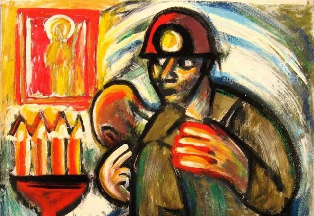 рисунок Романа Минина «Шахтерская молитва»