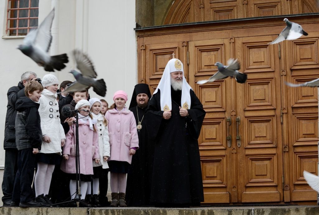 − Пожалуй, ничего особо не изменилось: Патриарх все так же выходит на паперть, ему передают голубей, затем Святейший их выпускает. Раньше еще были птички маленькие в клетках – их дети выпускали после голубей. Вообще, конечно, в прежние века принято было принято отпускать на волю лесных птиц, но голуби – это очень красиво, и для фотографа гораздо лучше. Так что спасибо обществу «Радонеж».