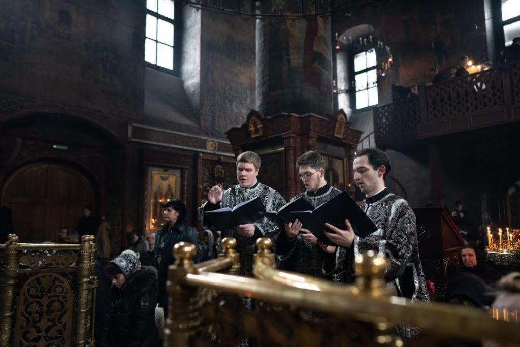 Особое, ответственное и непростое послушание несут певчие хора Академии, они не только поют на всех богослужениях седмицы, но и ежедневно собираются на длительные спевки. Репетируют песнопения Страстной седмицы и готовят пасхальные, что позволяет предвкушать Пасху. Спевки помогают лучше вникнуть в богослужебные тексты, остановить на них свое внимание.