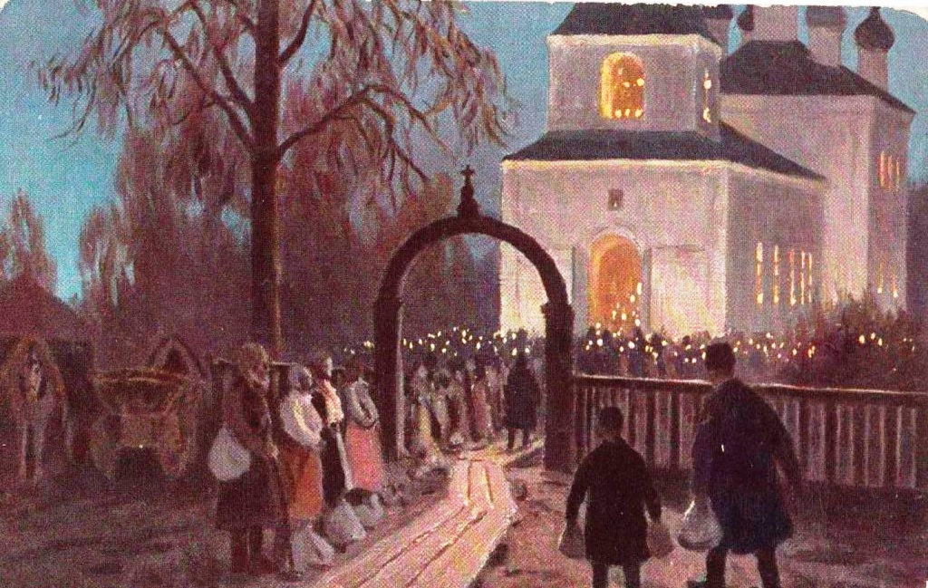 Трепетно билось сердце, когда за дверями запели «Христос воскресе!», и радостно откликнулось оно навстречу великому привету: «Воистину воскресе!» В церковь вошел с громким пением крестный ход. После мы все похристосовались. Отстояли заутреню и даже обедню.