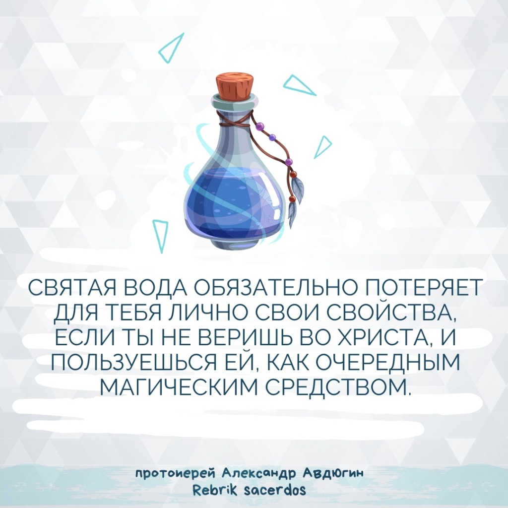 Святая вода обязательно потеряет для тебя лично свои свойства, если ты не веришь во Христа, и пользуешься ей как очередным магическим средством.