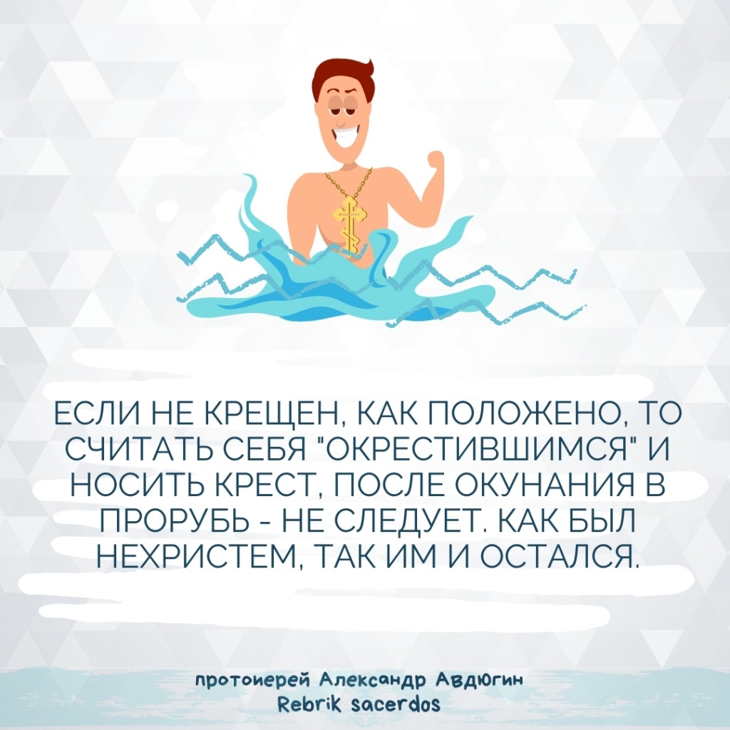 Если не крещен, как положено, то считать себя «окрестившимся» и носить крест после окунания в прорубь не следует. Как был нехристем, так им и остался.
