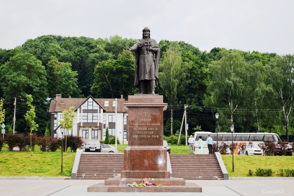 Смоленск стал одним из нескольких российских городов, в которых в 2015 году появились памятники Крестителю Руси. Автором скульптуры является смоленский художник Валерий Гращенков.
